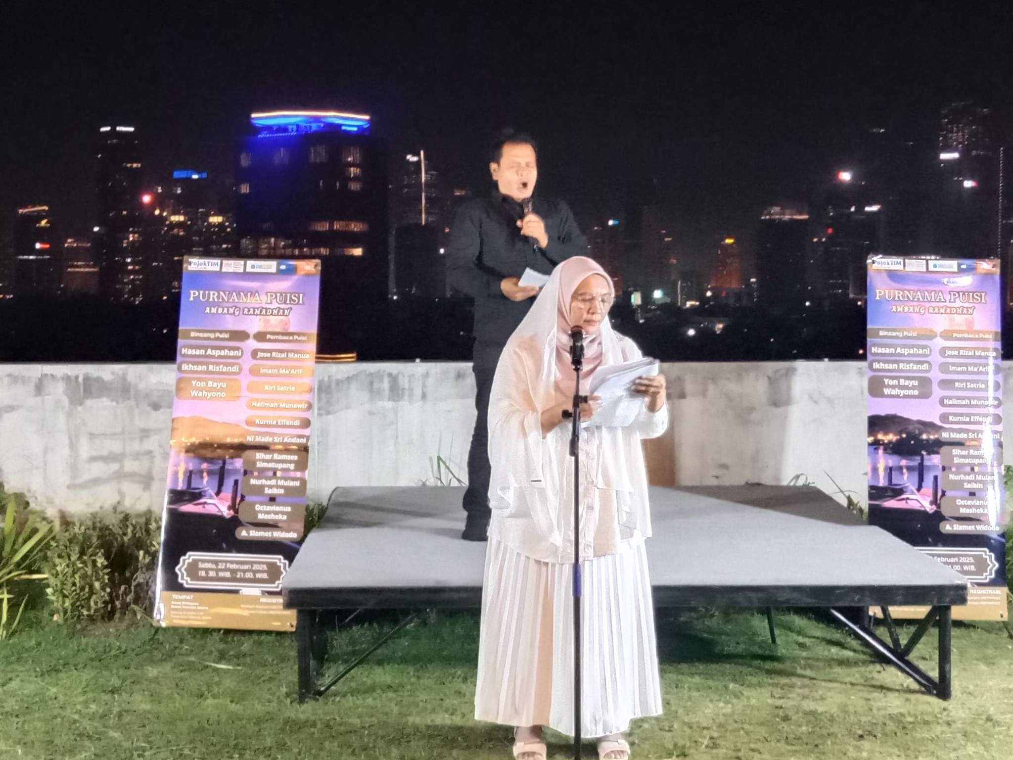 Suara Jose Rizal Manua mengalun syahdu membacakan dua puisi berjudul Allah, Ya Allah Ampunilah dan Marhaban, Ya Ramadhan sebagai pembuka acara di bawah langit malam Jakarta yang cerah. Totalitas pendiri Teater Tanah Air itu dalam membacakan puisinya membuat peserta hanyut, terbuai dalam pikiran masing-masing.