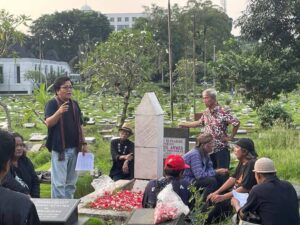 Sofyan RH Zaid (berdiri, baju hitam) saat menjadi pemantik diskusi di atas makam Chairil Anwar. […]
