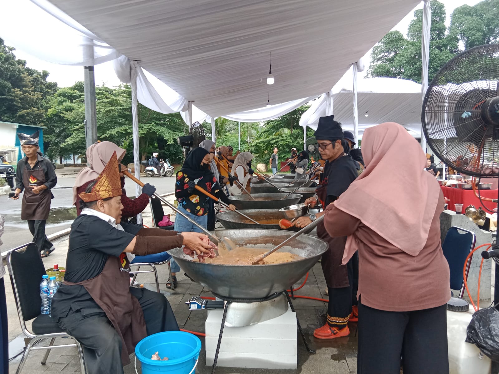Suasana di Plaza Teater Jakarta pun berubah menjadi dapur raksasa. Aroma rempah yang tajam menyeruak dari kancah (wajan besar) yang mengepul, di mana potongan daging diaduk perlahan bersama santan dan bumbu selama berjam-jam.