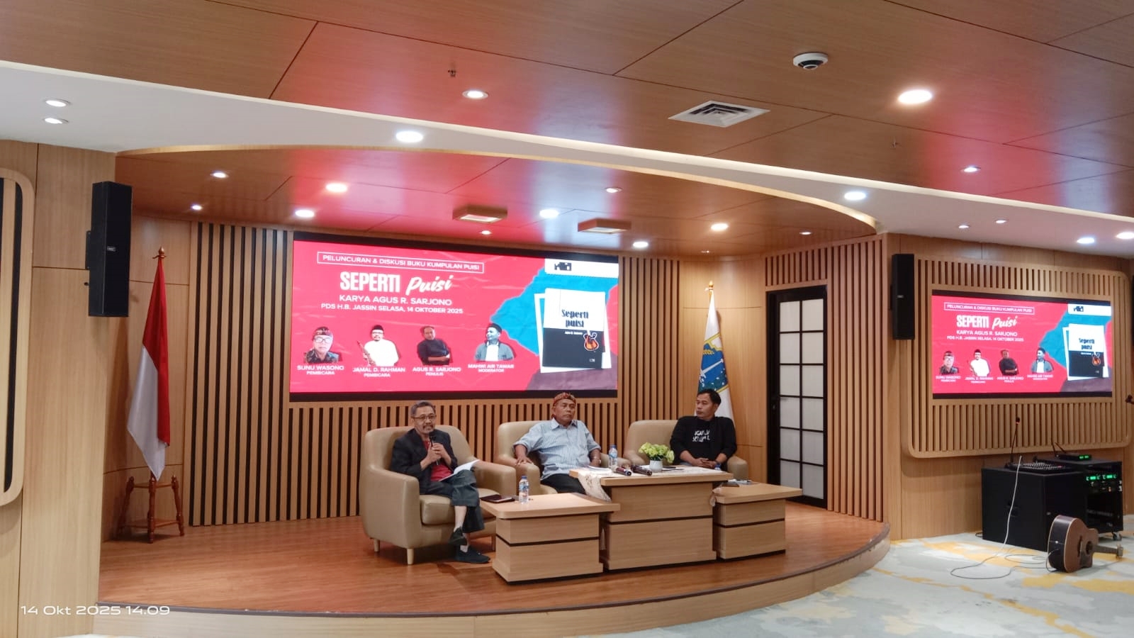 “Bahkan ada 17 puisi dari total 50 yang ditulis tahun 2024. Ada apa?” seru Sunu Wasono disambut tawa renyah penulisnya dalam acara peluncuran dan diskusi buku Seperti Puisi di PDS HB Jassin, Taman Ismail Marzuki, Jakarta, Selasa (14/10/2025).