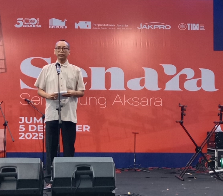 “Saya sering menyaksikan momen sederhana namun cukup menggetarkan. Seseorang berdiam cukup lama di depan satu halaman buku, tapi kemudian tersenyum kecil. Ada juga sepasang anak yang berebut buku sambil tertawa. Atau seorang remaja sedang membaca puisi dengan perlahan seolah setiap kata sedang meyakinkan bahwa dunia selalu punya tempat untuk dirinya. Dari sana kita belajar bahwa literasi adalah cermin yang tidak hanya menampilkan dunia tetapi juga mengembalikan kita pada diri sendiri,” ujar Nasruddin saat membuka acara Senandung Aksara di selasar Taman Ismail Marzuki (TIM), Jumat (5/12/2025).