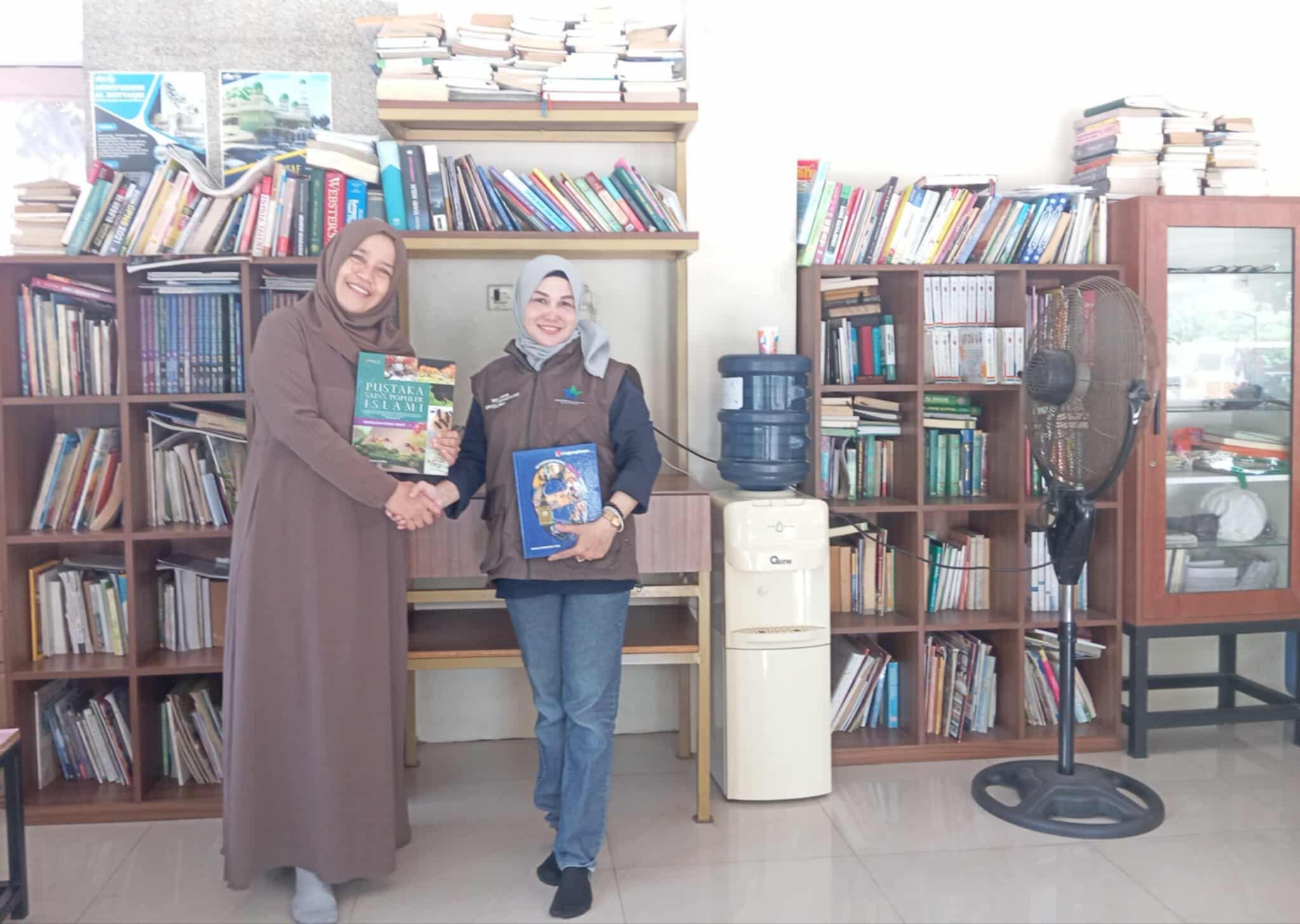 Yuliyanti Basri (kanan) saat mengunjungi perpustakaan masjid Al Muttaqin di BantarJati, Bogor. Foto: Ist.